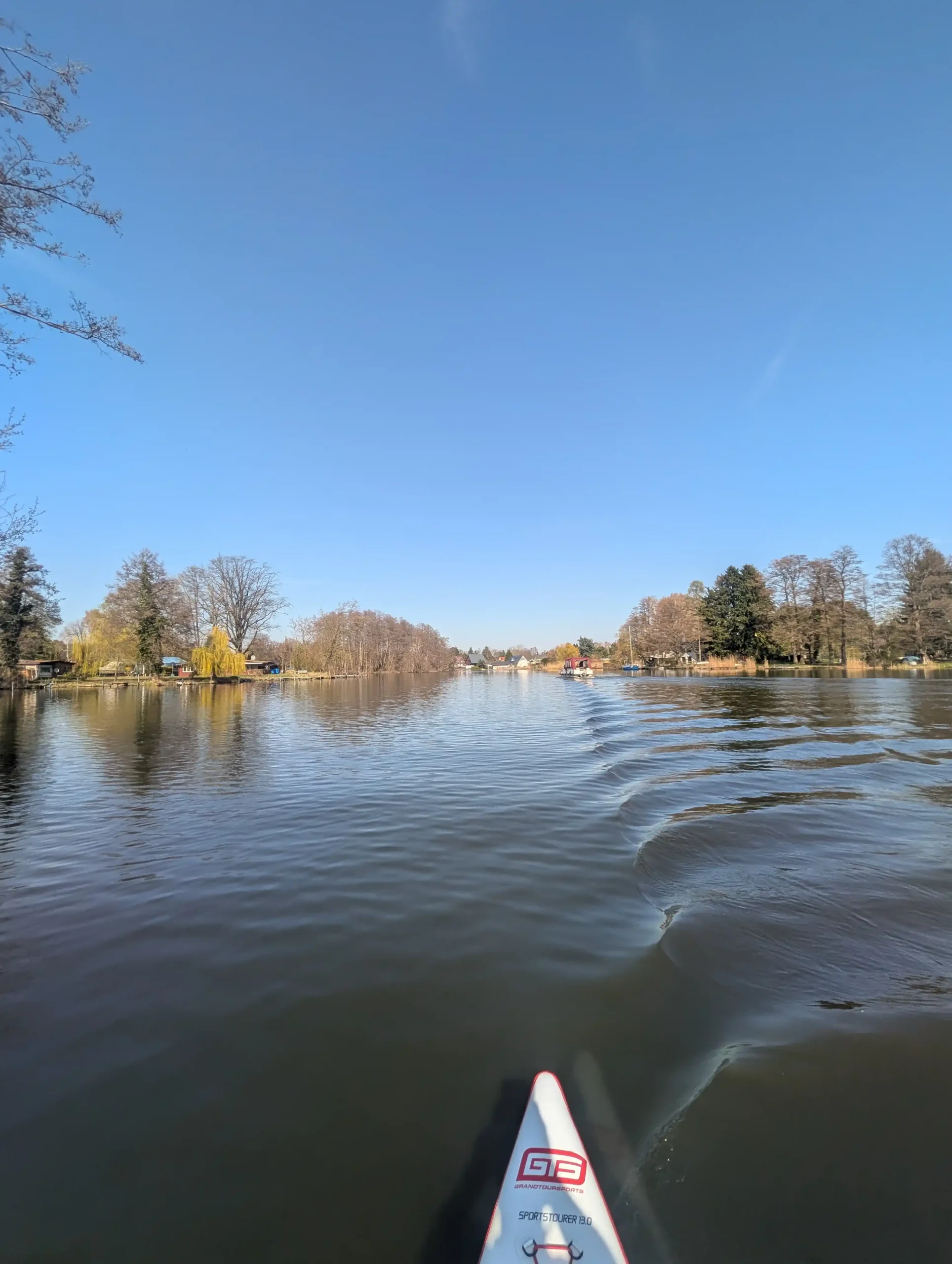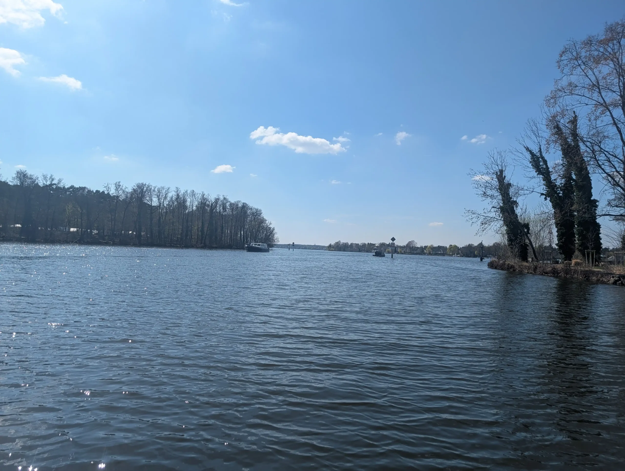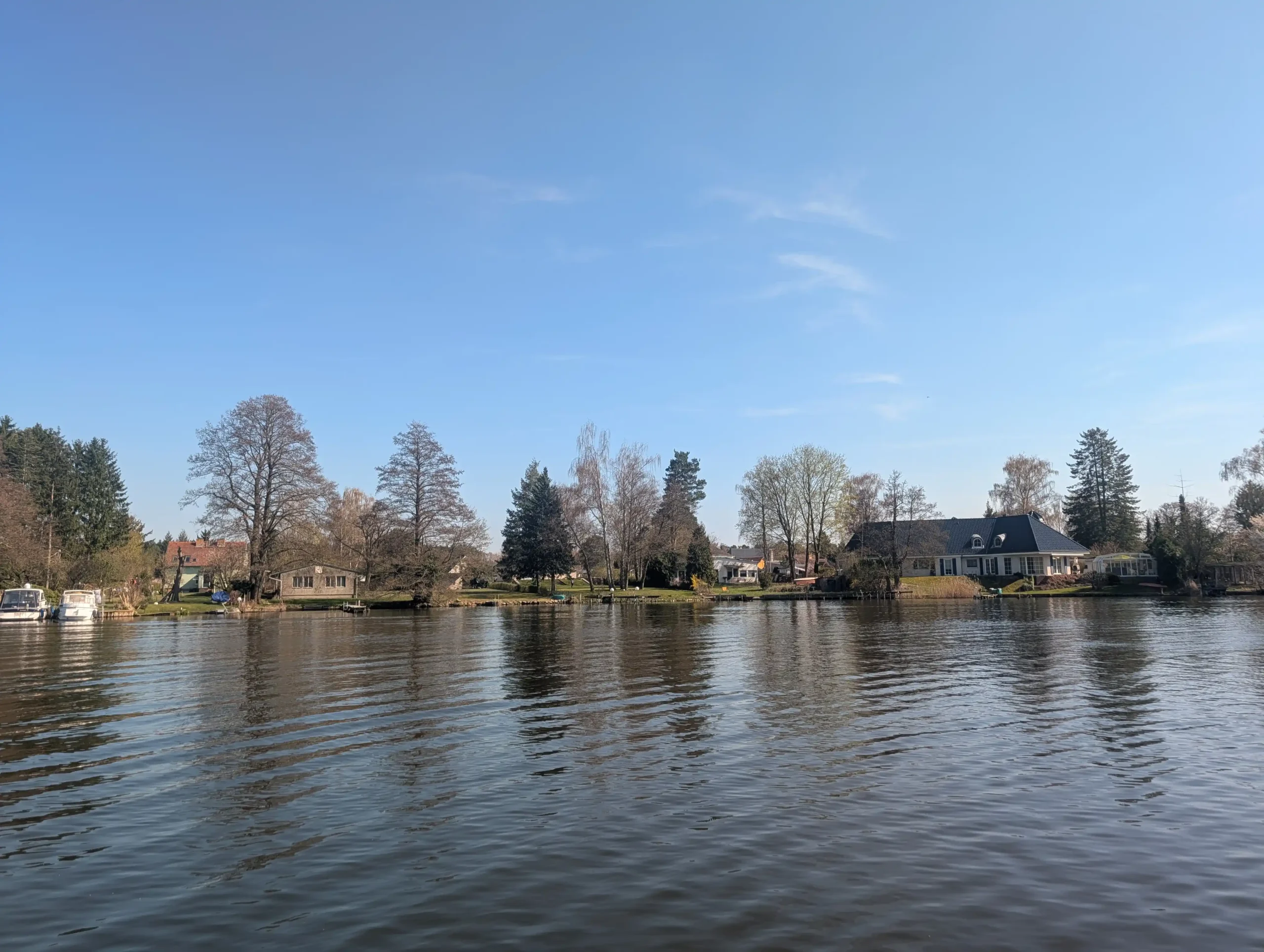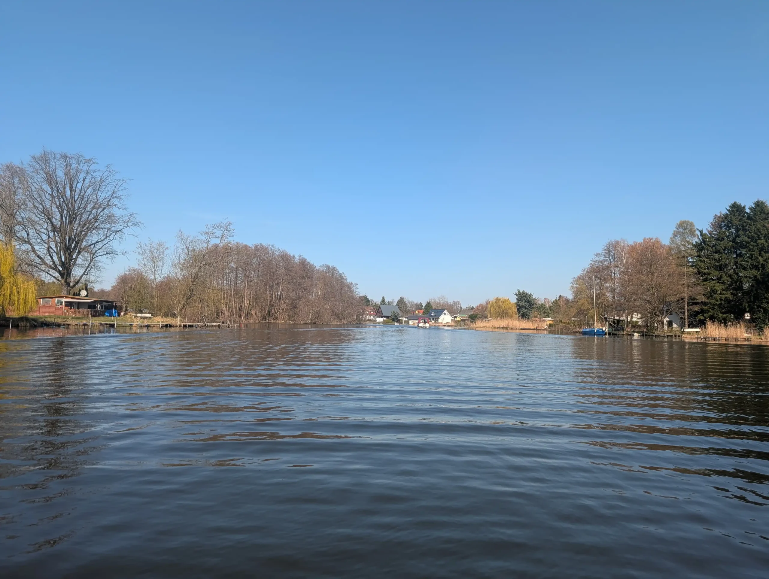 - Launch from Gemeindeanleger Schmöckwitz and head out south on the Dahme river, towards Zeuthener See / Rauchfangswerder. The first stretch is a pleasant warm-up, with a mix of village waterfront, reed edges, and broad views across the water.