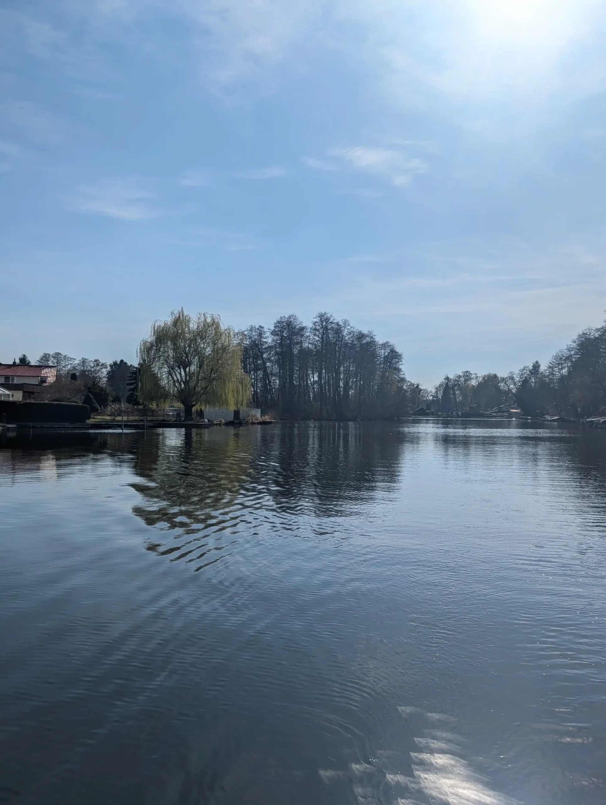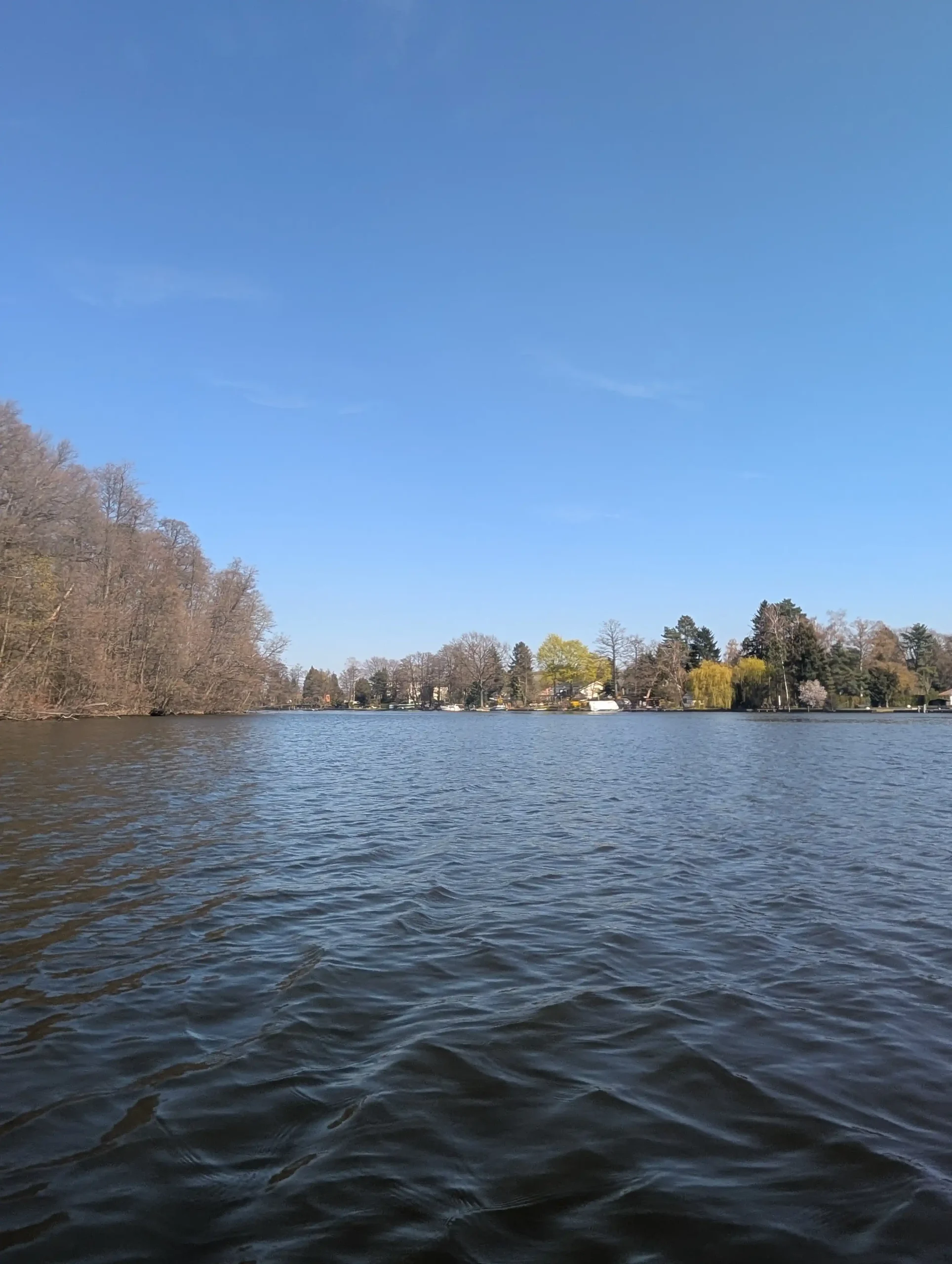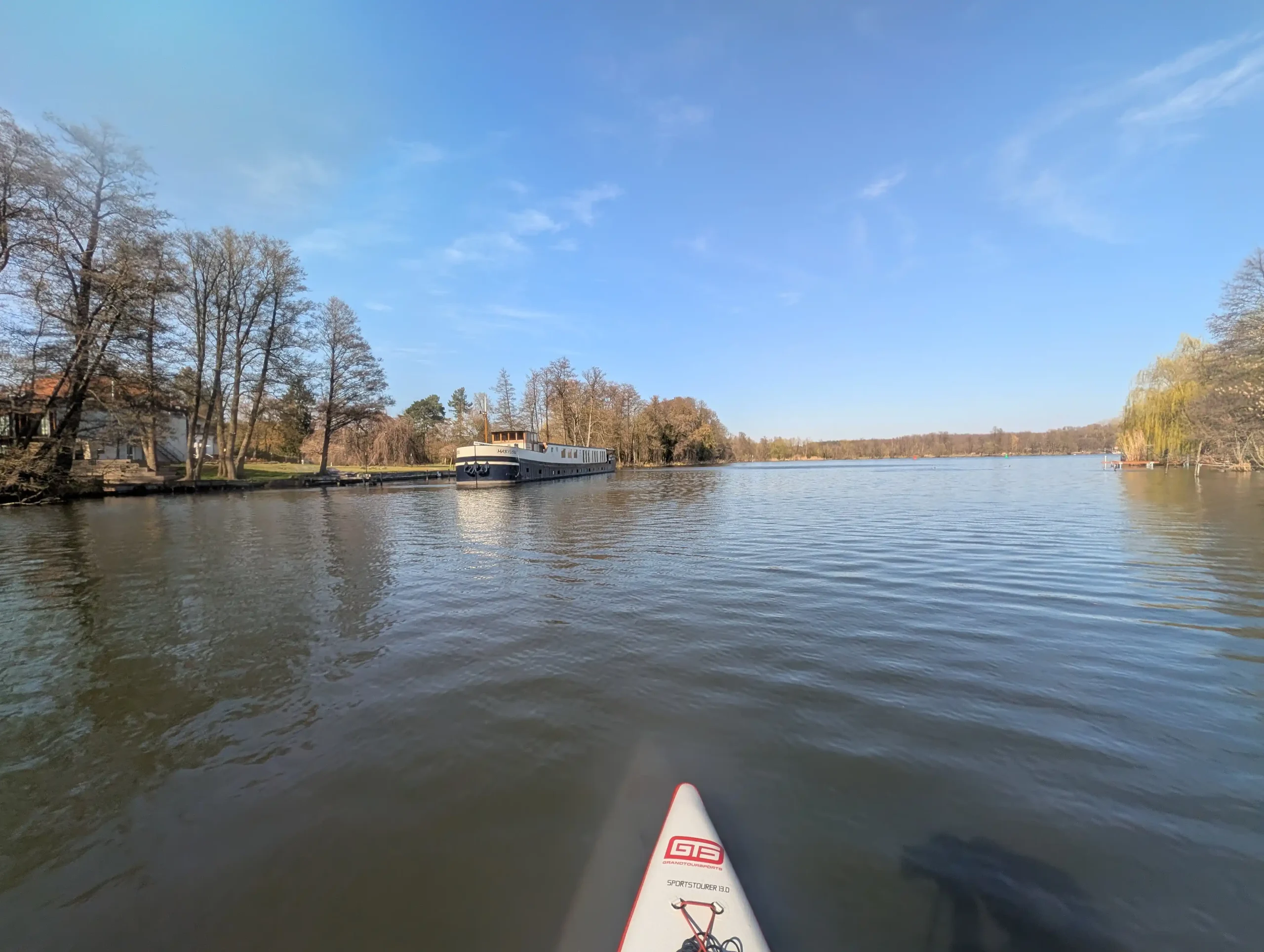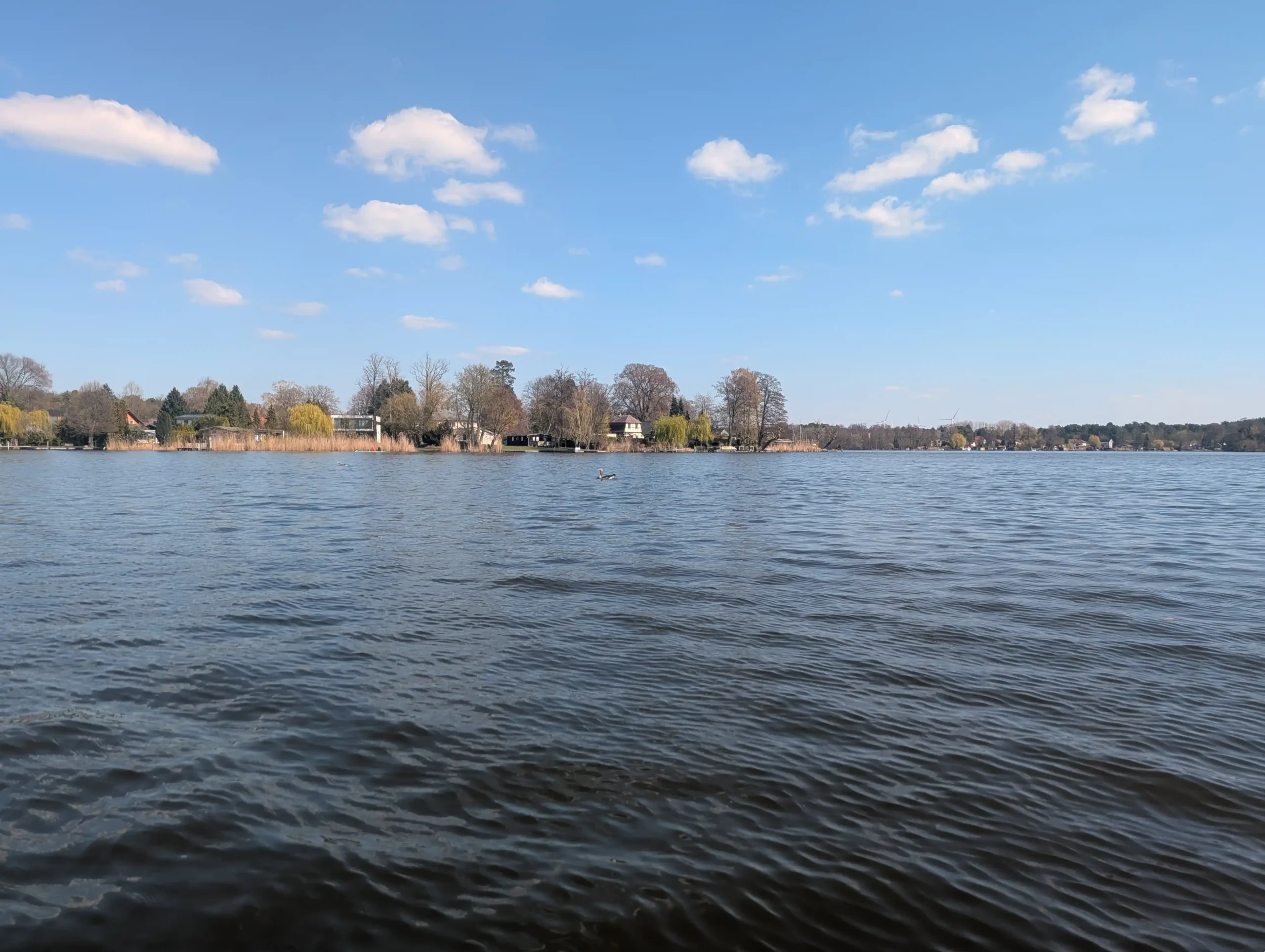 - Launch from Gemeindeanleger Schmöckwitz and head out south on the Dahme river, towards Zeuthener See / Rauchfangswerder. The first stretch is a pleasant warm-up, with a mix of village waterfront, reed edges, and broad views across the water.