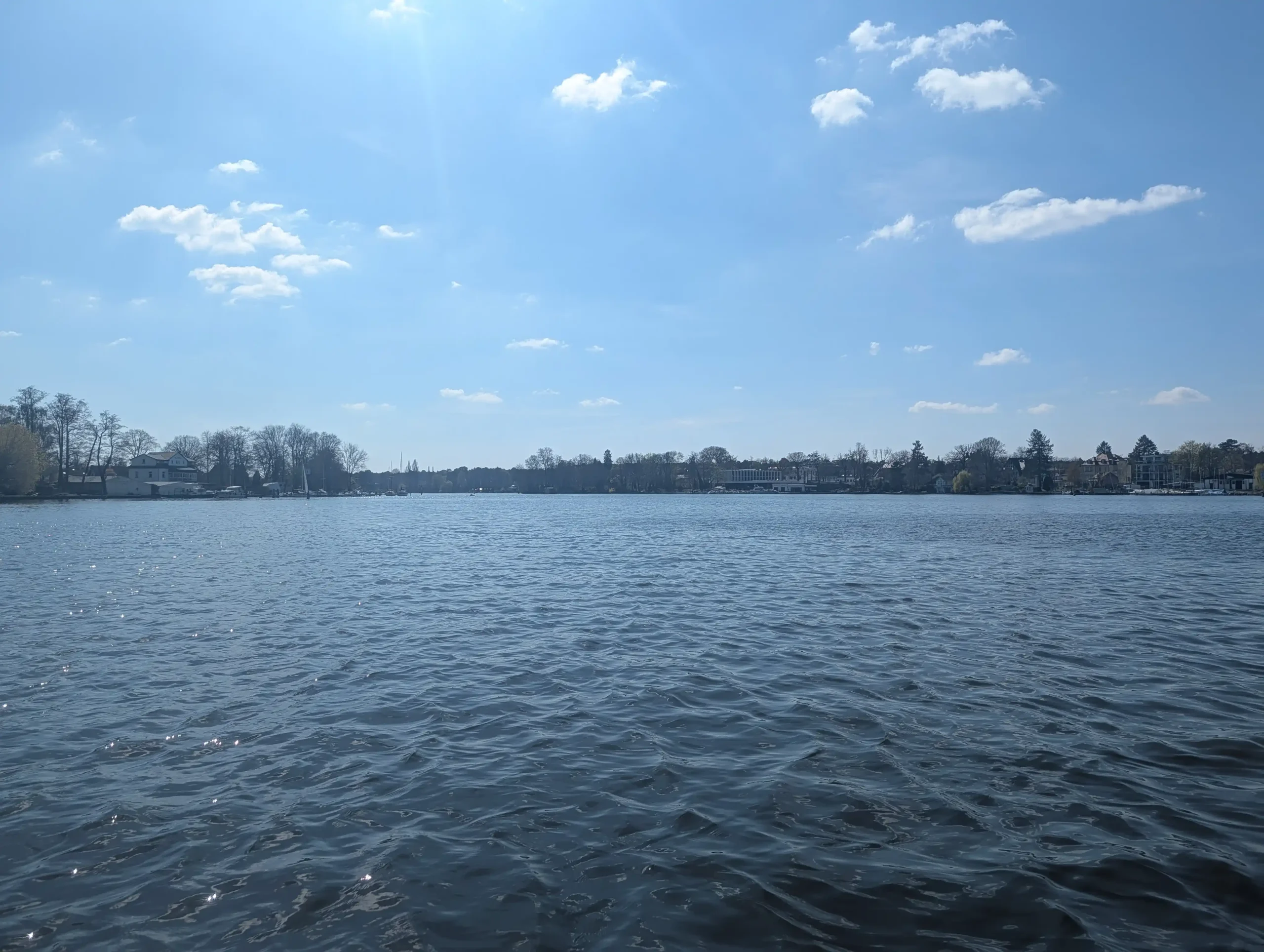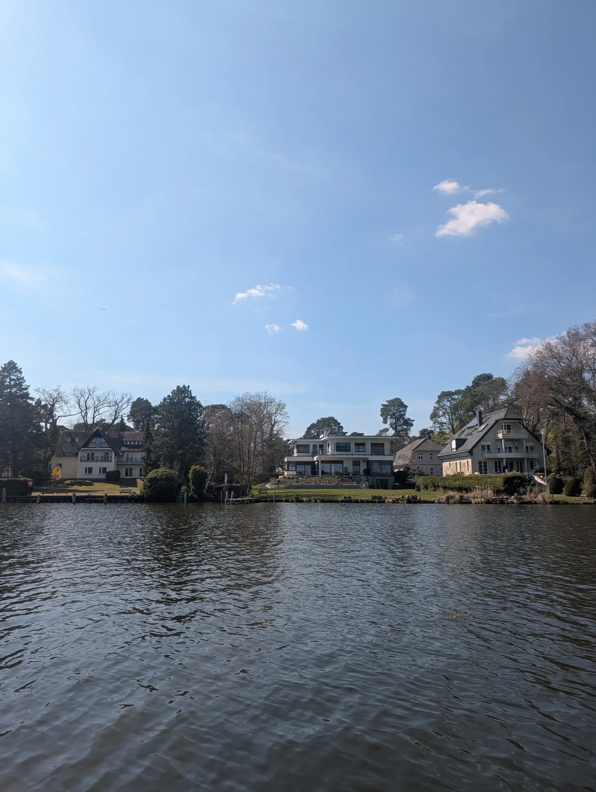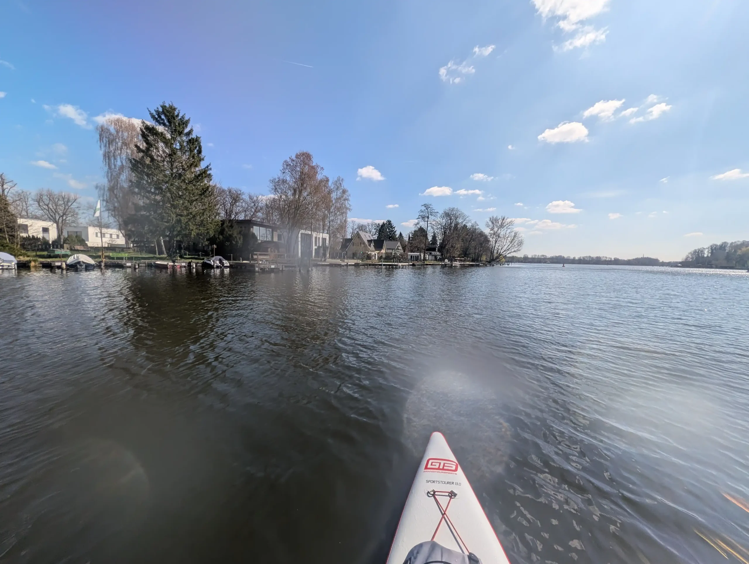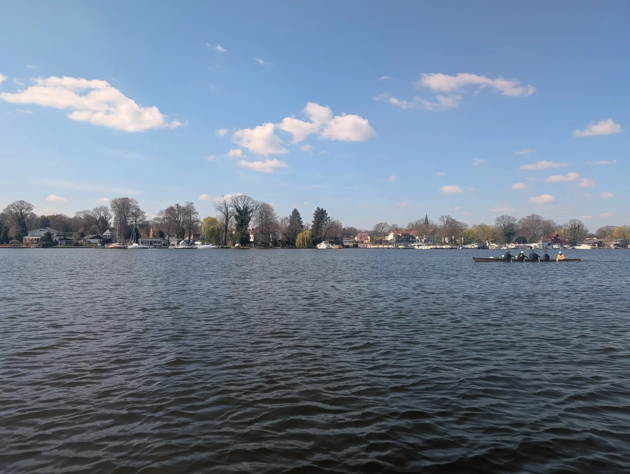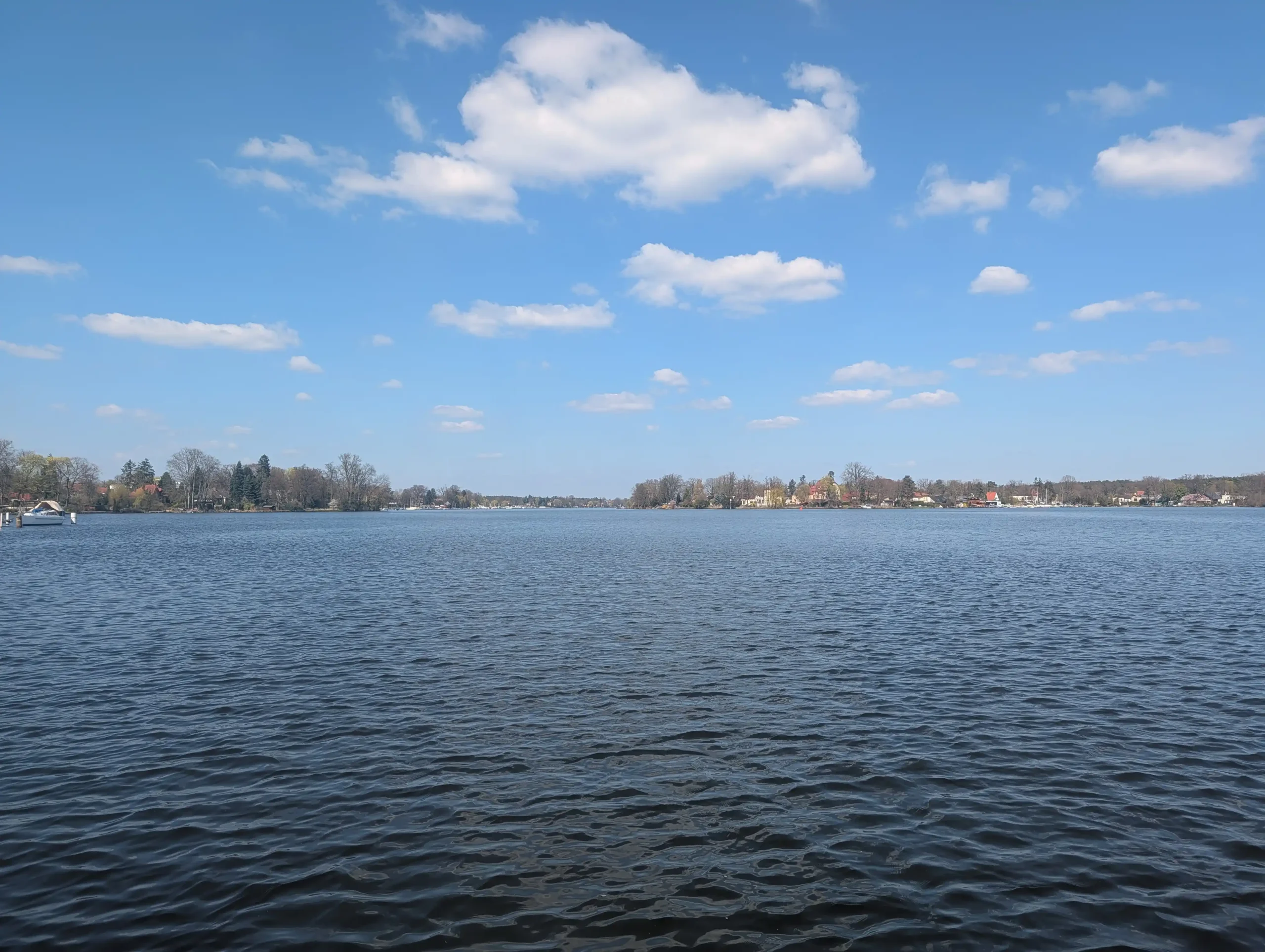 - Launch from Gemeindeanleger Schmöckwitz and head out south on the Dahme river, towards Zeuthener See / Rauchfangswerder. The first stretch is a pleasant warm-up, with a mix of village waterfront, reed edges, and broad views across the water.