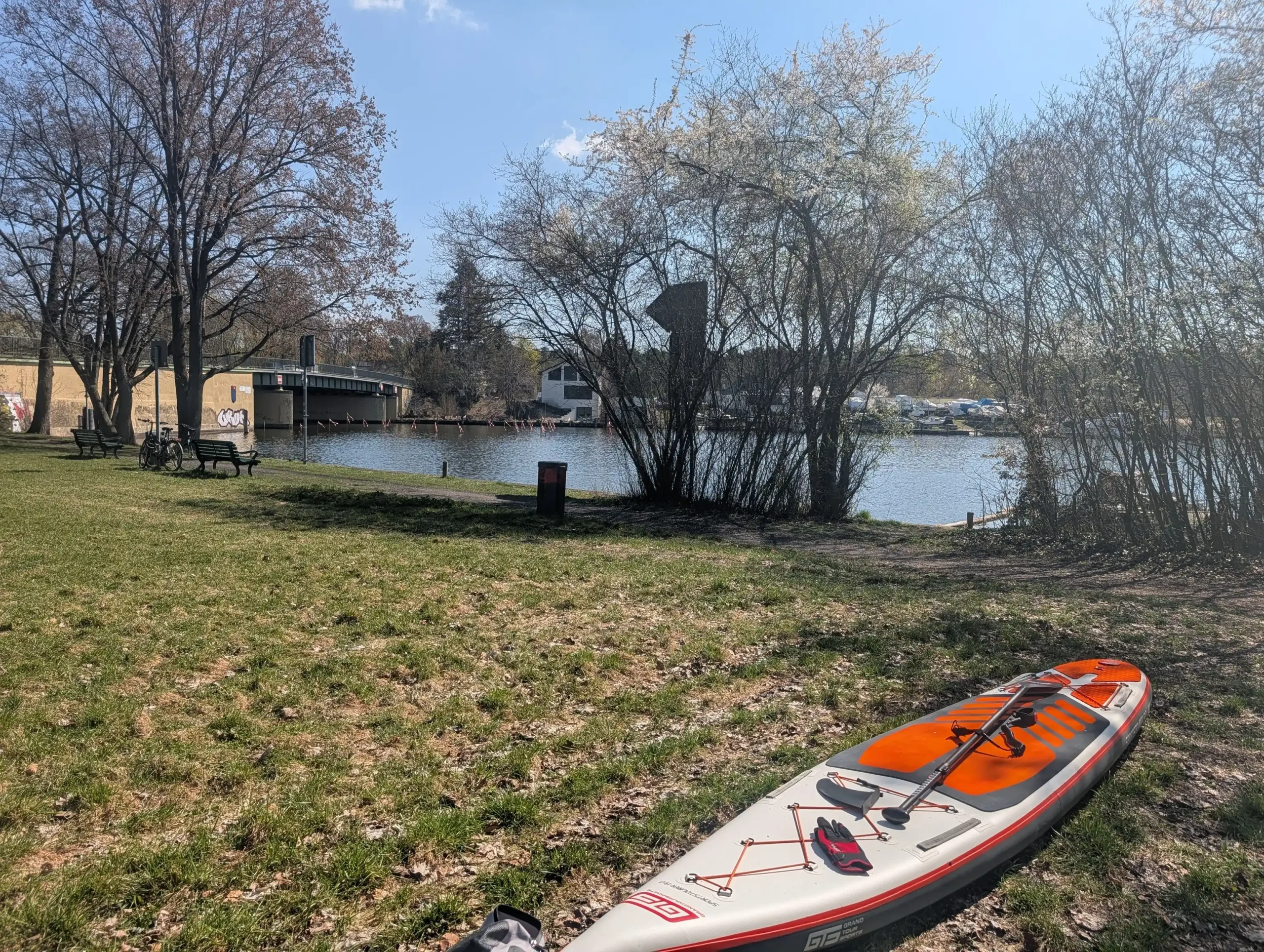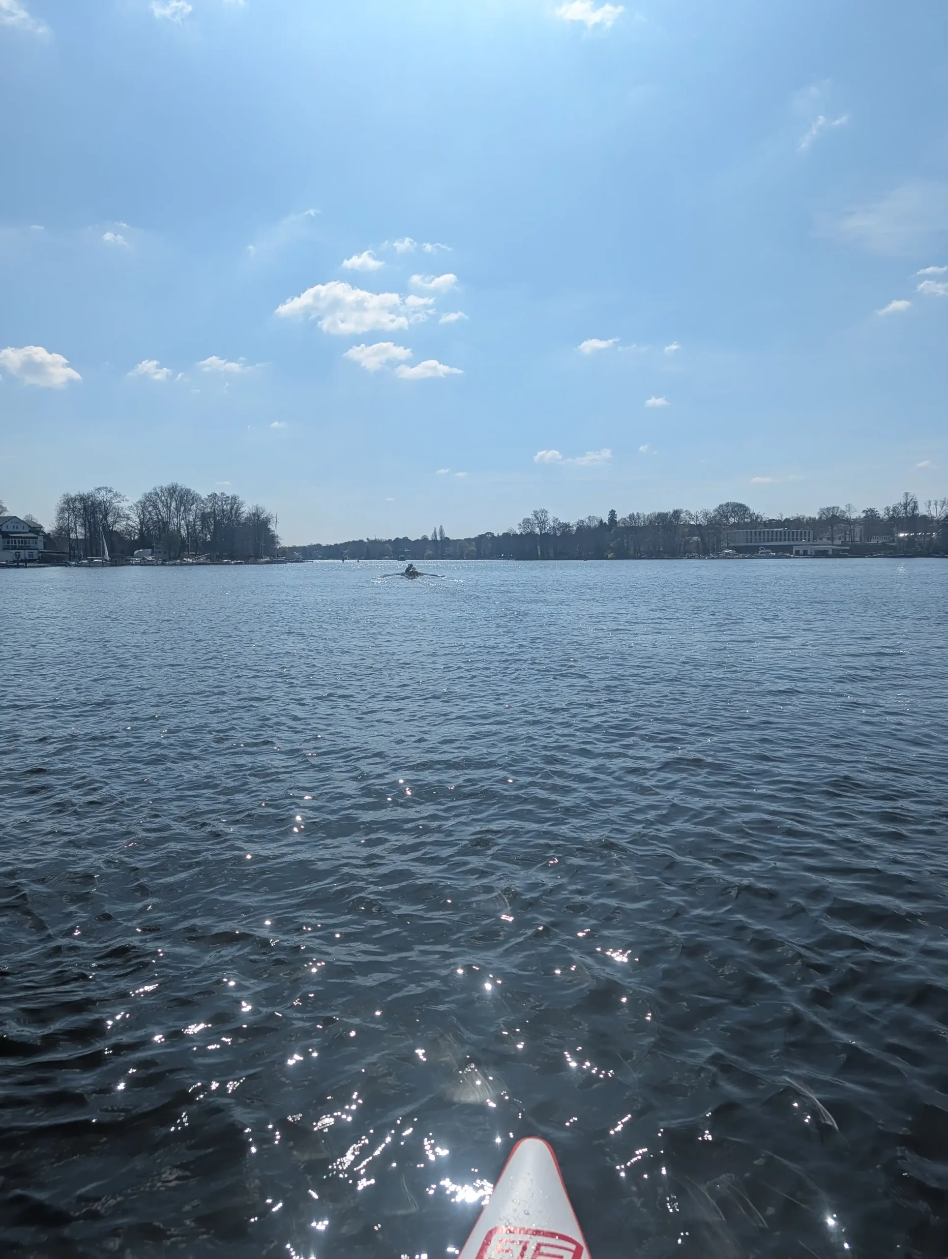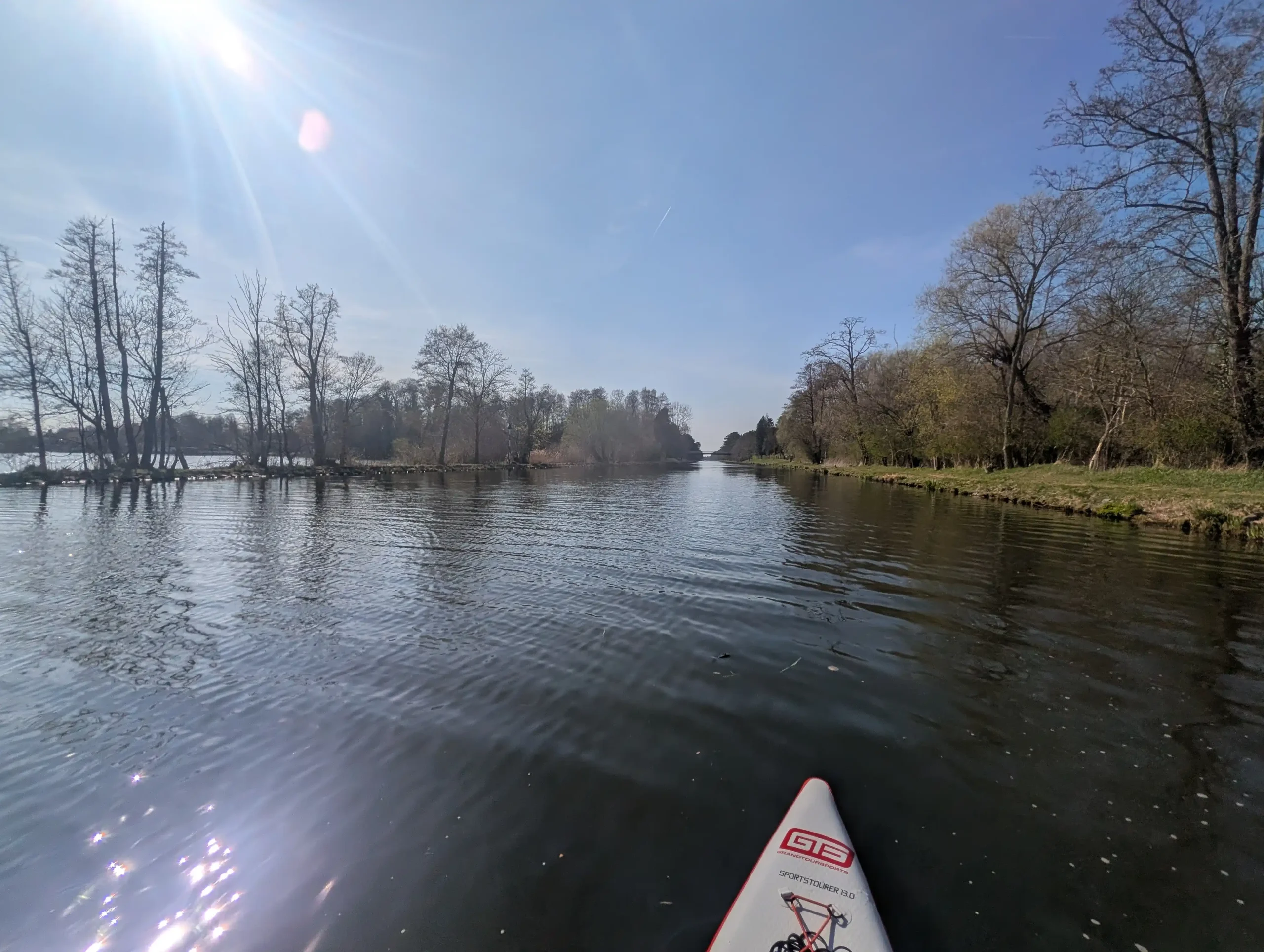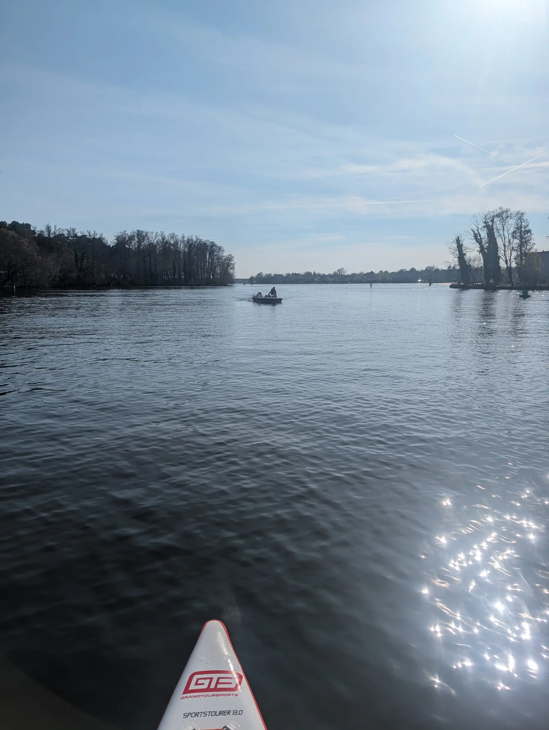 - Launch from Gemeindeanleger Schmöckwitz and head out south on the Dahme river, towards Zeuthener See / Rauchfangswerder. The first stretch is a pleasant warm-up, with a mix of village waterfront, reed edges, and broad views across the water.